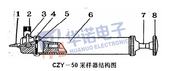 1.氣嘴 2.接頭膠管 3.閥門把 4.變換閥 5.墊圈 6,活塞筒 7.拉桿 8.手柄